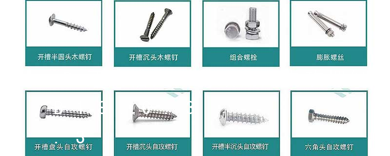 主要分類包括普通螺絲、機螺絲、自攻螺絲和膨脹螺絲三種。有頭螺釘Cap screw 過去限于全牙的扣件。六角頭螺釘Hex cap screw與大六角螺栓Hex bolt 顧名思義為頭部為六角型的外螺紋扣件,設計為使用扳手轉動。依照ASME B18.2.1標準,六角頭螺釘(Hex cap screw)較一般的大六角螺栓(Hex bolt)的頭高和